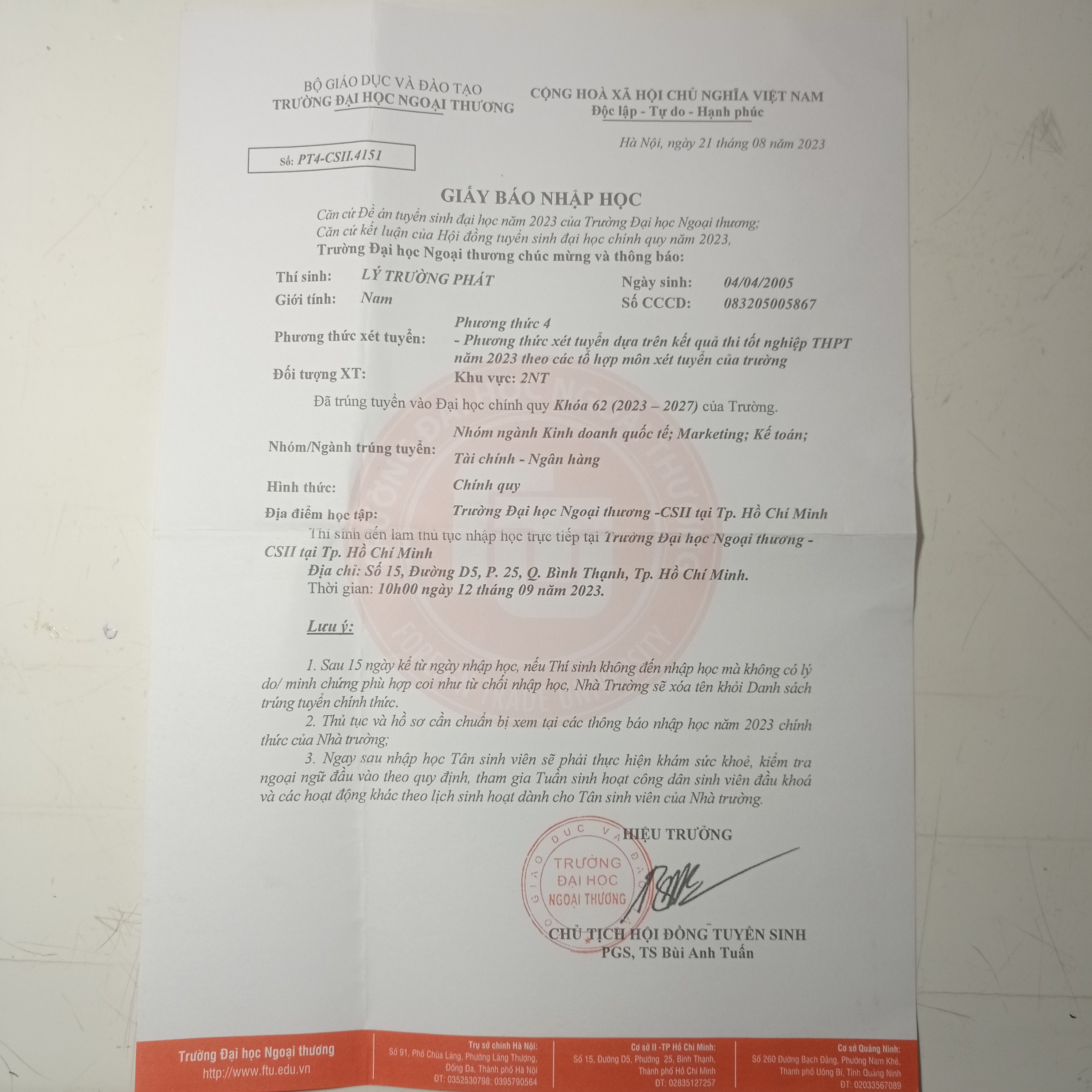Gia sư: Lý Trường Phát Trường đại học Ngoại Thương