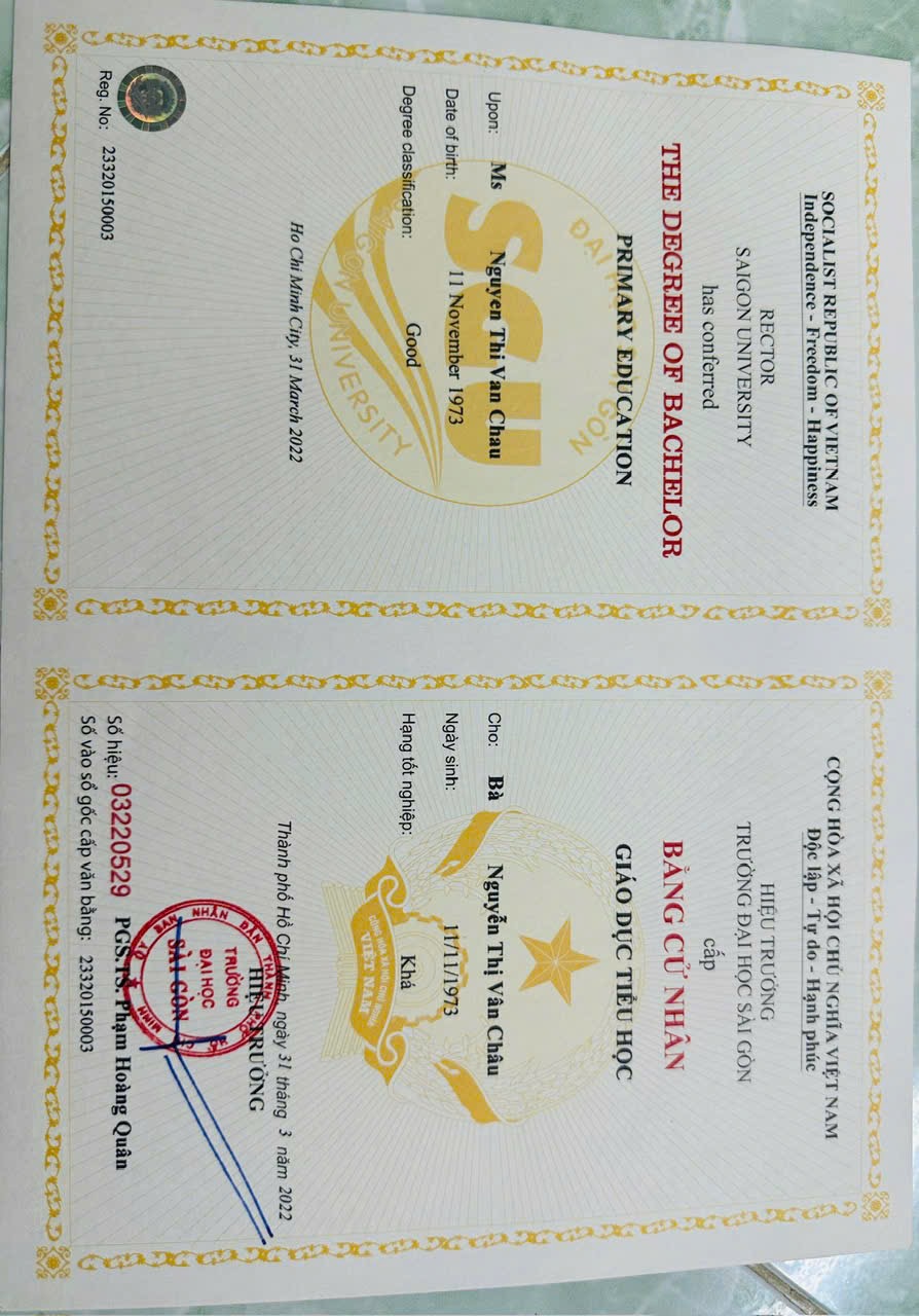 Thông tin khác: Có 1 năm kinh nghiệm dạy lớp 1,2,3,6
