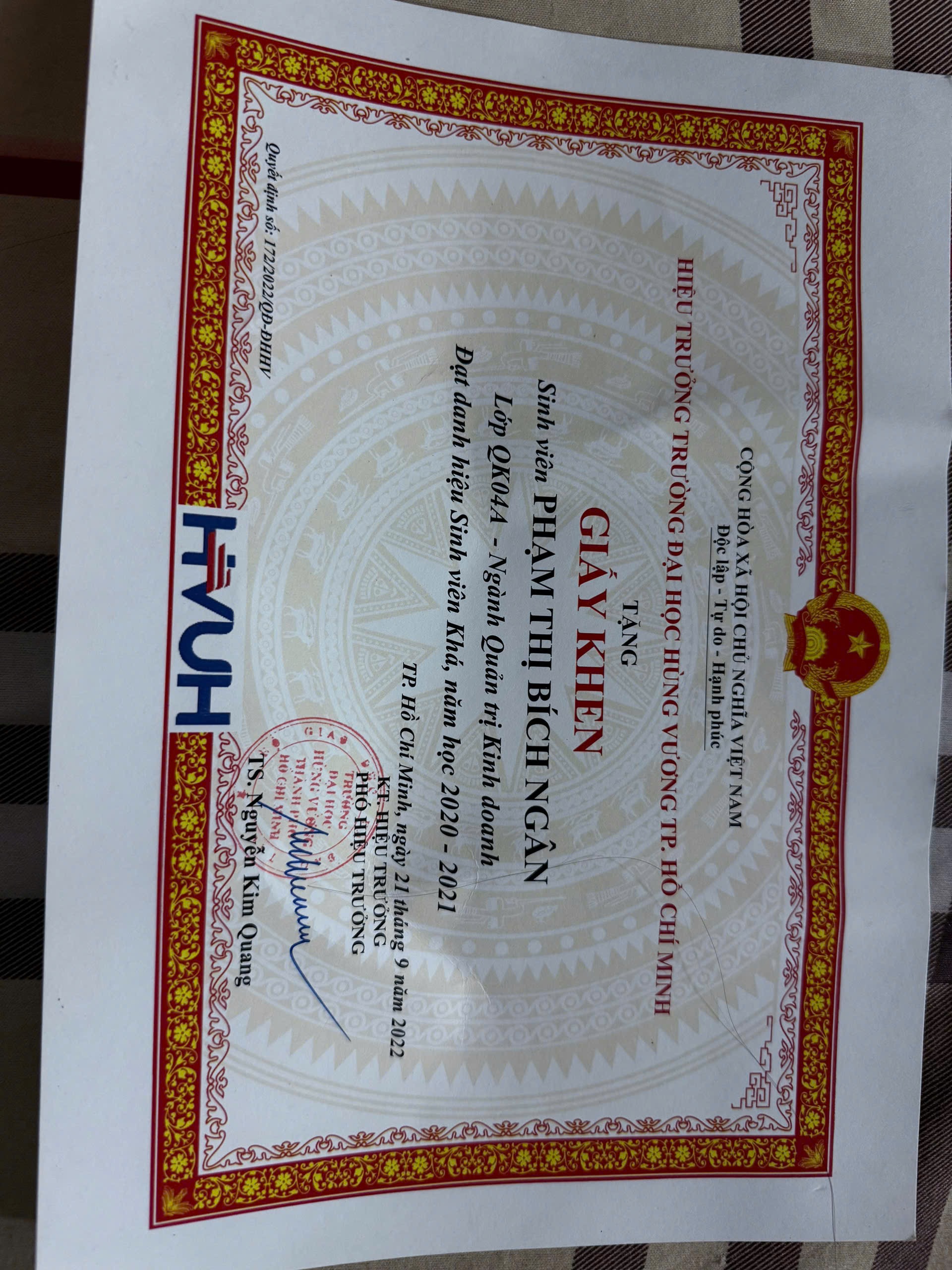 - Tốt nghiệp loại Giỏi tại THPT chuyên Huỳnh Mẫn Đạt - Chuyên hóa